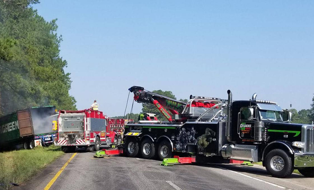 Инцидентът е станал близо до Holly Hill малко след 4:30 часа сутринта, съобщава bg-voice.com. Тогава джип се е врязъл в камиона. При удара е започнало да изтича гориво, което се е възпламенило.