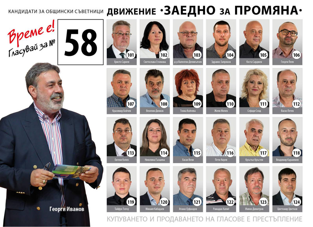 На 04.10.2019 г. (петък) от 18:00 часа в голямата зала на читалище „Заря“ Георги Иванов ще представи пред обществеността кандидата за Кмет на Община Хасково Христо Сариев и кандидатите за общински съветници на Коалиция „Движение ЗАЕДНО за промяна“.