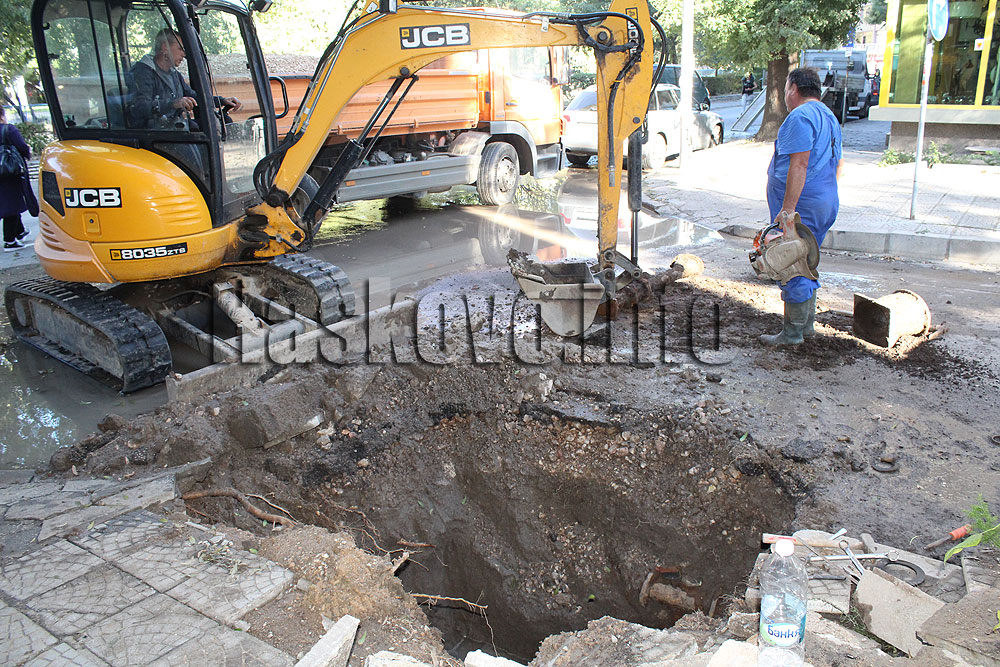 От ВиК изпратиха екип, който да отстрани аварията на булевард „България“ срещу полицията в Хасково.