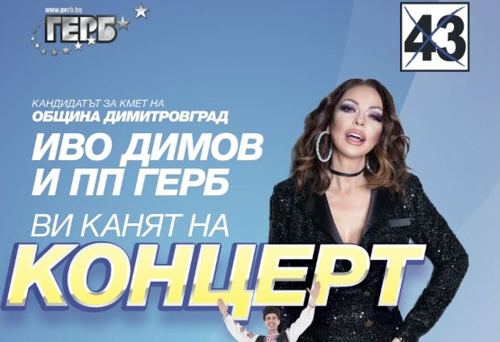 Известният Национален фолклорен ансамбъл „Българе“ и Ивана ще поздравят всички привърженици и симпатизанти на Иво Димов и ПП ГЕРБ в Димитровград.