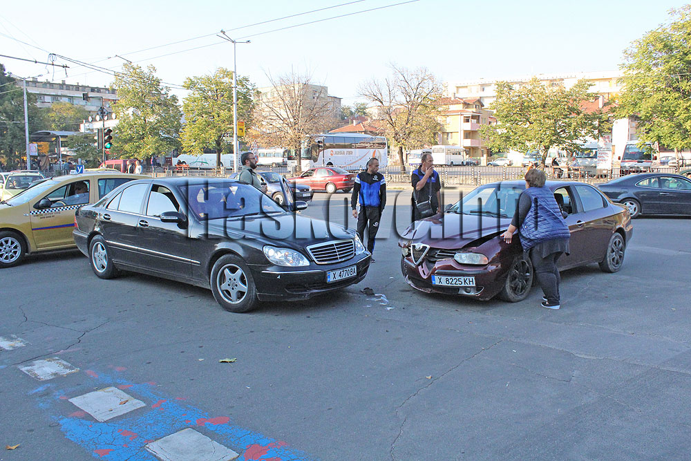 Мерцедес и Алфа Ромео се удариха на кръстовището до автогарата в Хасково