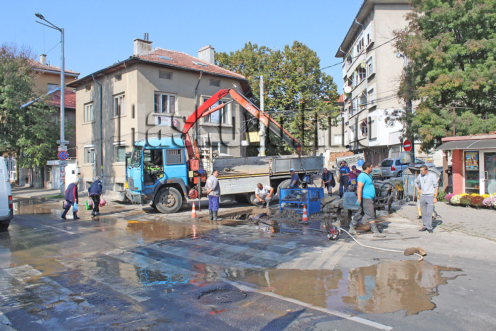 При изкопни работи за прекарване на газ спукаха тръба на ВиК в Хасково