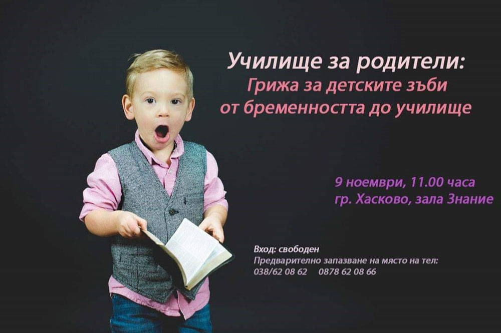 Хасковските стоматолози д-р Йоана Филева – Петева и д-р Илияна Джонева организират безплатно училище за родители. Темата е „Грижа за детските зъби от бременността до училище“.