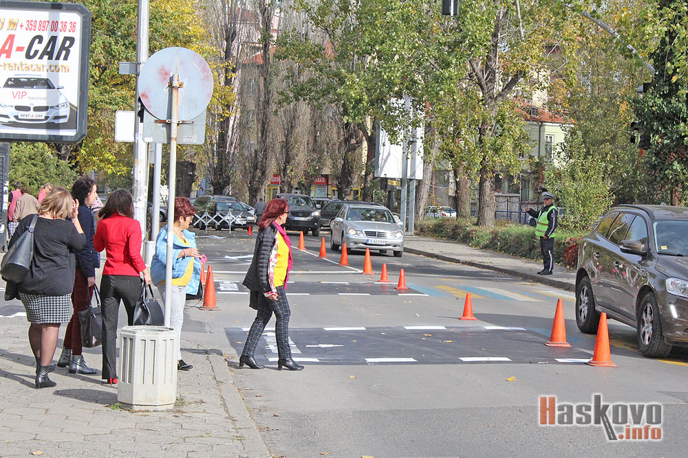 Част от платното на булевард „България“ до Бизнесцентъра в Хасково е затворено за движение заради освежаване на маркировката.