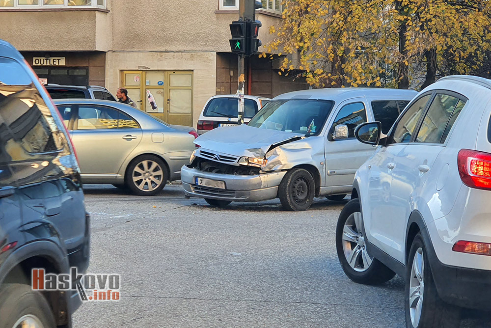 Удар на кръстовището между улиците „Дунав“ и „Георги Кирков“ в Хасково затрудни за кратко движението в час пик тази сутрин, сигнализираха читатели на Haskovo.info.