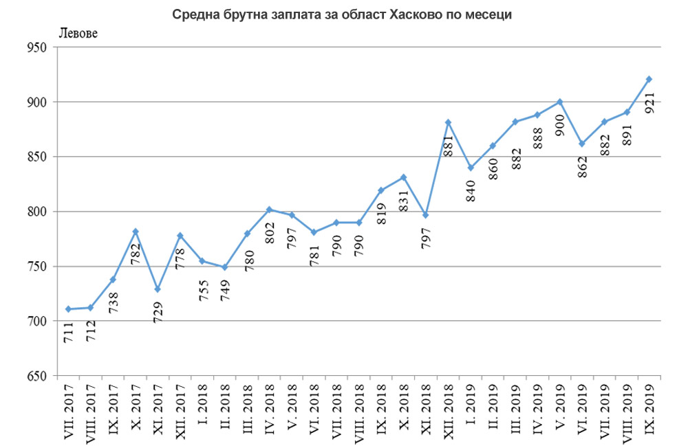От юли до септември средно жителите на Хасковска област са получавали 898 лева заплата. В обществения сектор, т.е. държавните и общински институции тя е 1 082 лева, а в частните фирми – 841 лева. В сравнение с периода април – юни заплатите са се повишили с близо 2%.
