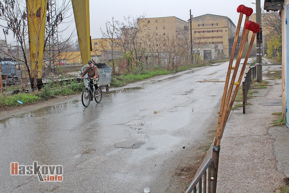 Хасковлия е забил ненужни патерици в оградни пана на улицата зад Цигарена фабрика.
