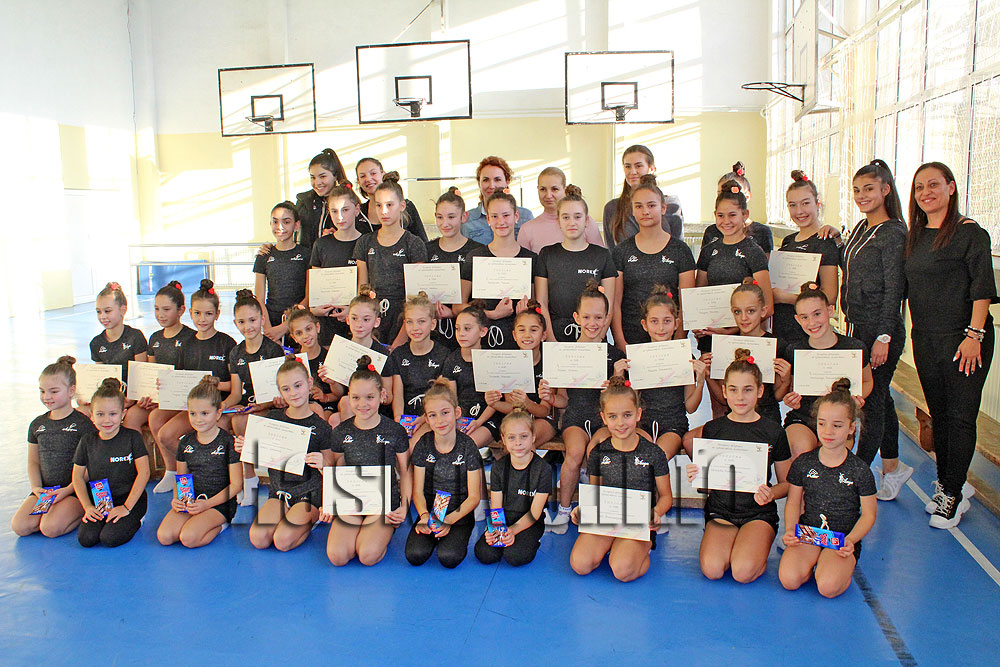 Звездни гимнастички от българската федерация проведоха изпит на състезателките от хасковския клуб „Аида“ за покриване на спортно-техническите нива „Златна роза“.