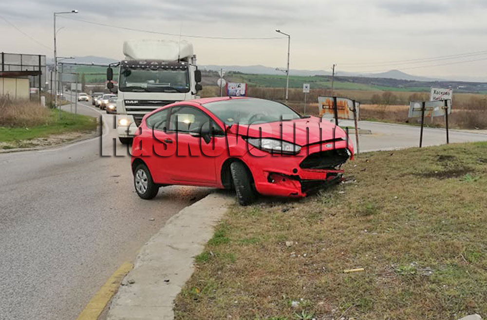 Лек автомобил Форд катастрофира в кръговото на изхода на Хасково за Кърджали.