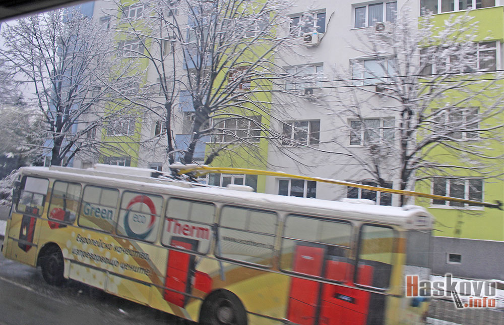 Тролей аварира тази сутрин на булевард „Раковски“ в заснежено Хасково. На негово място по линията е пуснат друг тролейбус.