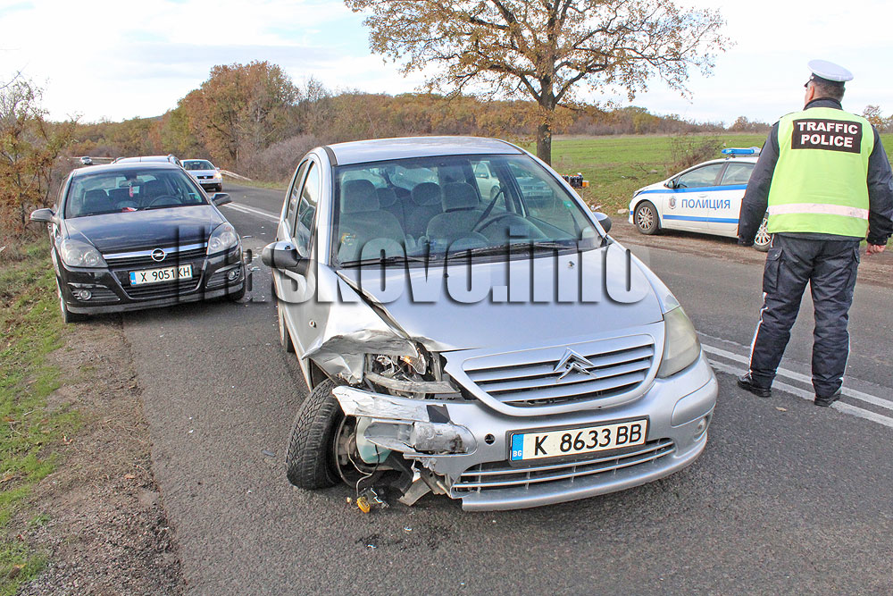 Ударили са се Опел, Ситроен и Мазда. Шофьорът на Опела разказа пред Haskovo.info, че е пътувал с жена си и малкото им дете, което се разплакало. Той подал мигач и намалил, за да отбие от пътя. Тогава бил ударен от Ситроена, а в него се блъснала Маздата.