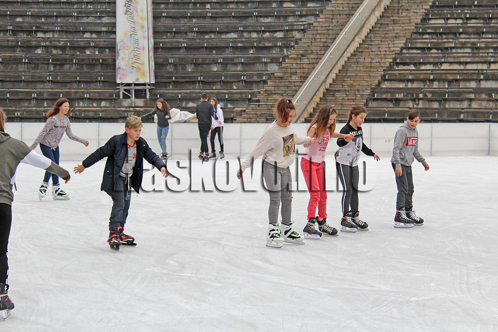 Ледената пързалка на площадка „Спартак“ в Хасково отвори и на нея вече се забавляват първите деца и младежи.
