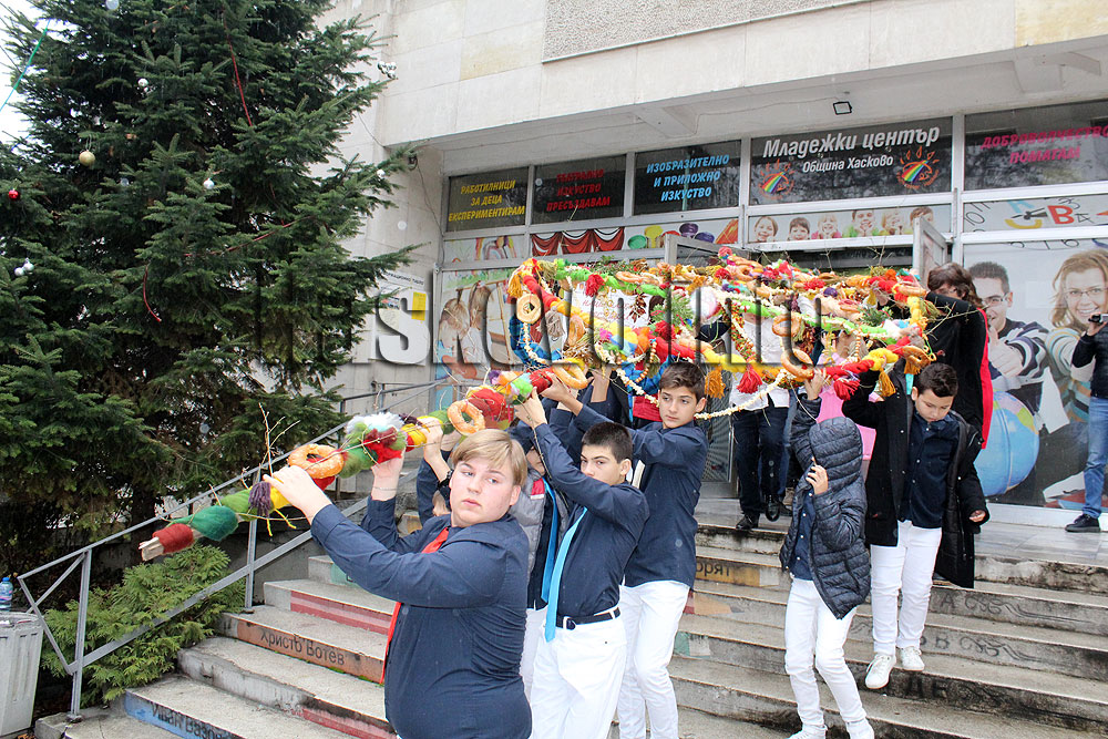 Деца издигнаха гигантската сурвачка пред Младежкия център в Хасково