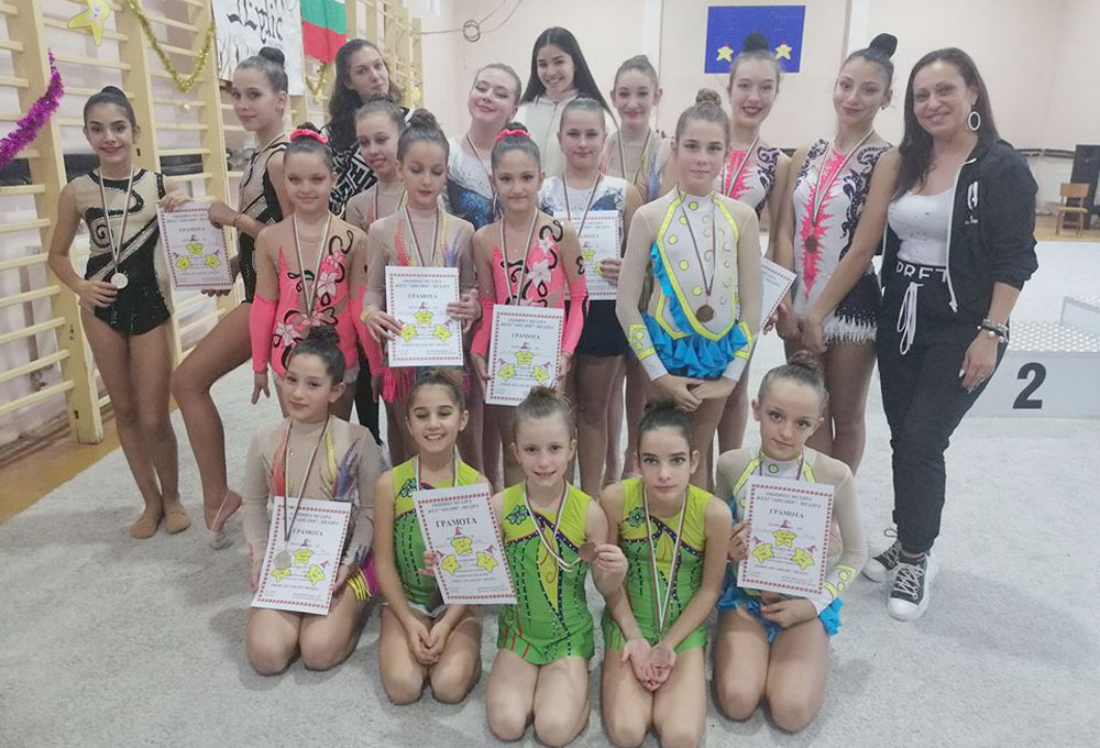 Турнирът „Коледни звездички“ се проведе в Мездра. Сребърни медали спечелиха ансамбъл двойка без уред Александра Георгиева и Яна Александрова, ансамбъл двойка обръчи Диана Методиева и Евгения Желева и ансамбъл двойка обръчи Радост Иванова и Дарина Паскалева.