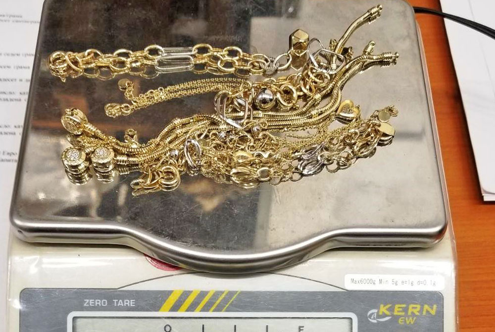 При последвалата физическа проверка, след разглобяване на три от седалките, митничарите установяват, че в тях са укрити полиетиленови пликове, съдържащи 266 златни и 1 470 сребърни накити. Според експертизата на вещото лице, една част от откритите изделия са гривни, медальони, пръстени, обици, синджири от 14 и 22-каратово злато с общо тегло 383 грама, а друга част – медальони от сребро проба 925 с тегло 1 070 грама, на обща стойност близо 31 000 лв.