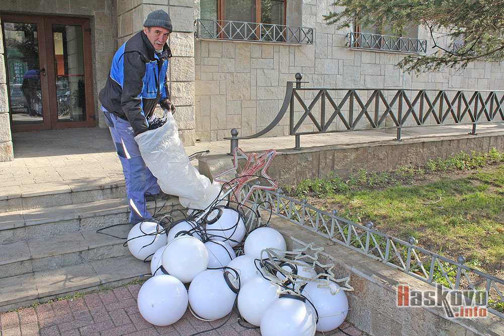 Работници вече свалят коледно-новогодишната украса в центъра на Хасково.