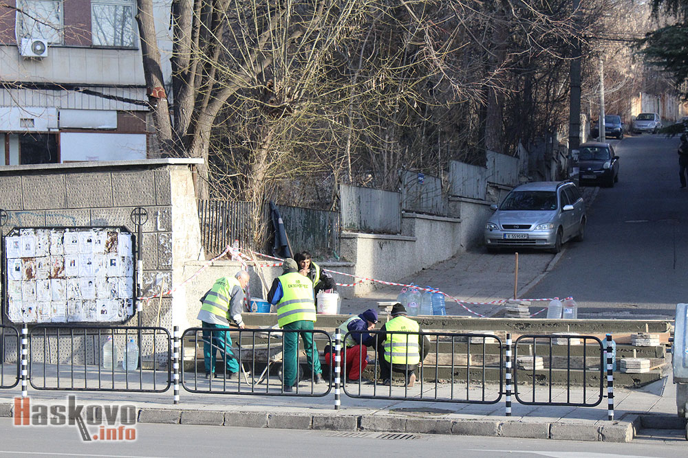 Работници от сутринта ремонтират стълби до ДНА в Хасково.