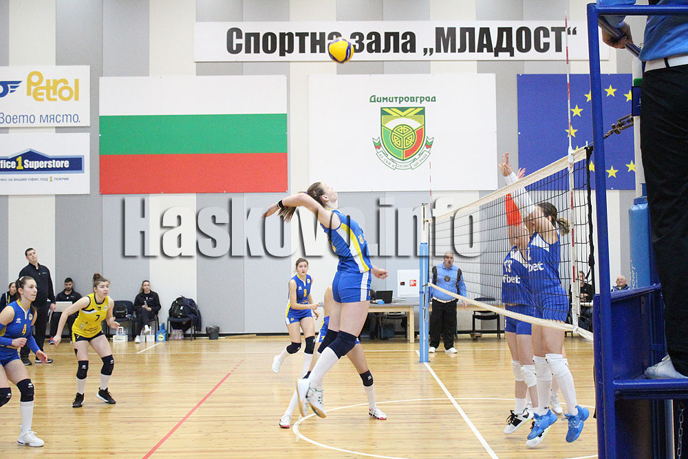 Момичетата на треньора Диян Боюклиев опитаха да бъдат равностойни на софиянки и в периоди от мача водеха. В крайна сметка те отстъпиха с 0:3 (20:25, 17:25, 19:25). Най-резултатна с 9 точки е Милена Димова.