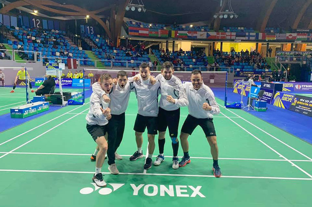 Националният отбор на България по бадминтон за мъже записа трета победа на Европейското първенство в Лиевен, Франция и зае първото място в група 8.
