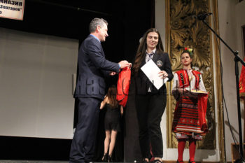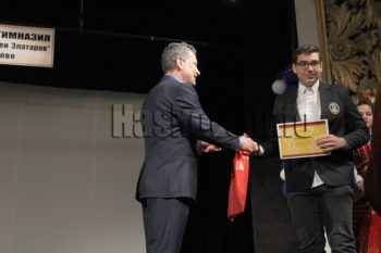 Отличието е за големите им постижения през годината. Те бяха наградени на церемония в театър „Иван Димов“ за патронния празник на гимназията. Директорът Деян Янев поздрави всички и заяви, че е горд със своя екип.