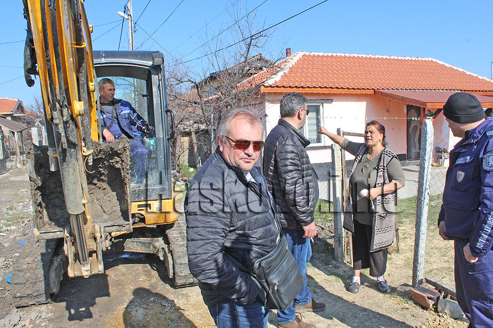 Преди дни по пресечките на улица „Могила“ са били прекъснати над 15 незаконни връзки. Днес от водното дружество провериха адресите и се оказа, че още пирвите няколко пак са се присъединили незаконно. С помощта на багер и под полицейска охрана те бяха отново прекъснати.