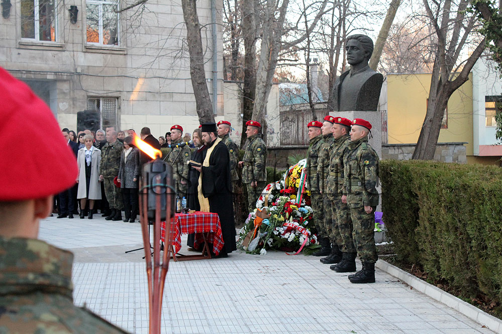 Хасково почете 147 г. от гибелта на Васил Левски с ритуал по поднасяне на венци и цветя пред паметника до едноименното училище.