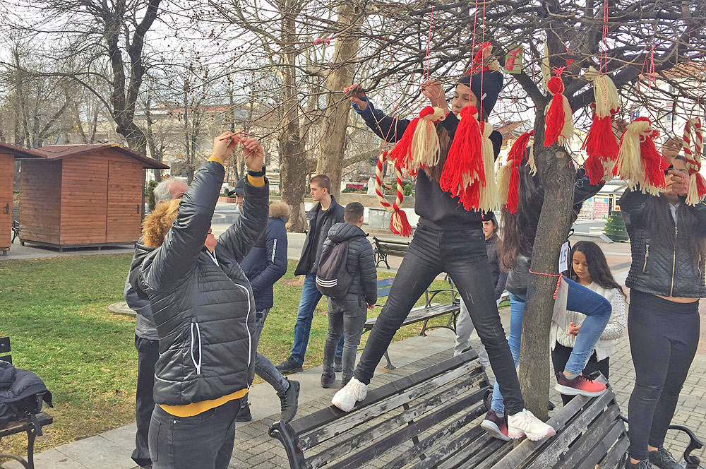 От 11 до 16 часа децата и младежите разкрасяват центъра като аранжират в бяло и червено дърветата. Освен това момичетата и момчетата от школата по етнография с ръководител Нели Арнаудова ще превърнат в бяло-червен мартенски символ и една от пейките в центъра на града.