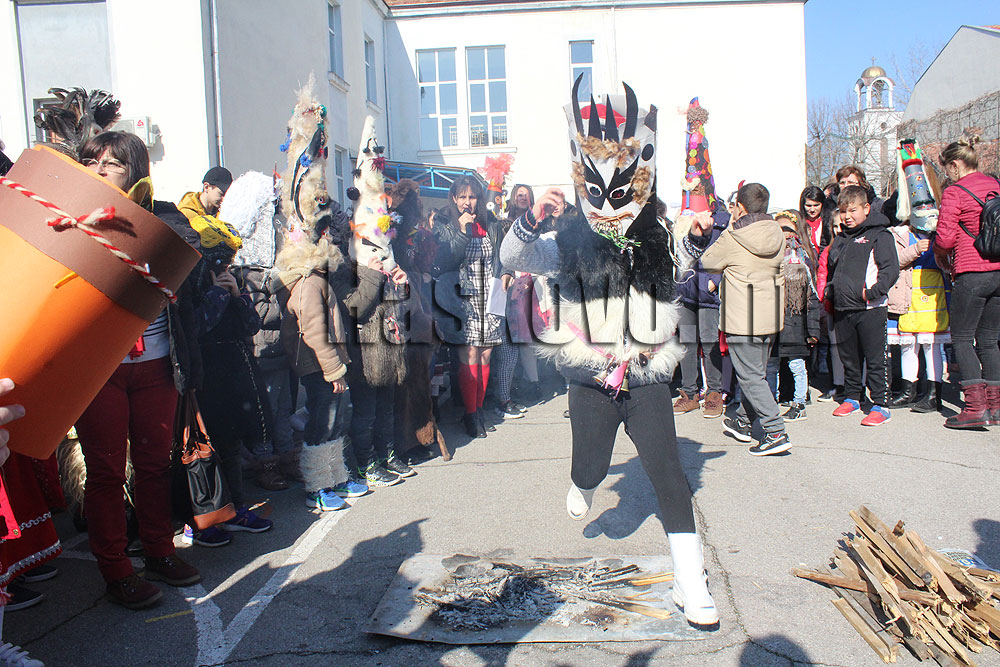Ученици и родители сами изработиха страшните маски и оригинални костюми за прогонване на злите сили. В двора беше запален огън, който децата прескачаха за здраве. От „Климент Охридски“ изпълниха обичая хамкане. Имаше песни и наричания за здраве.