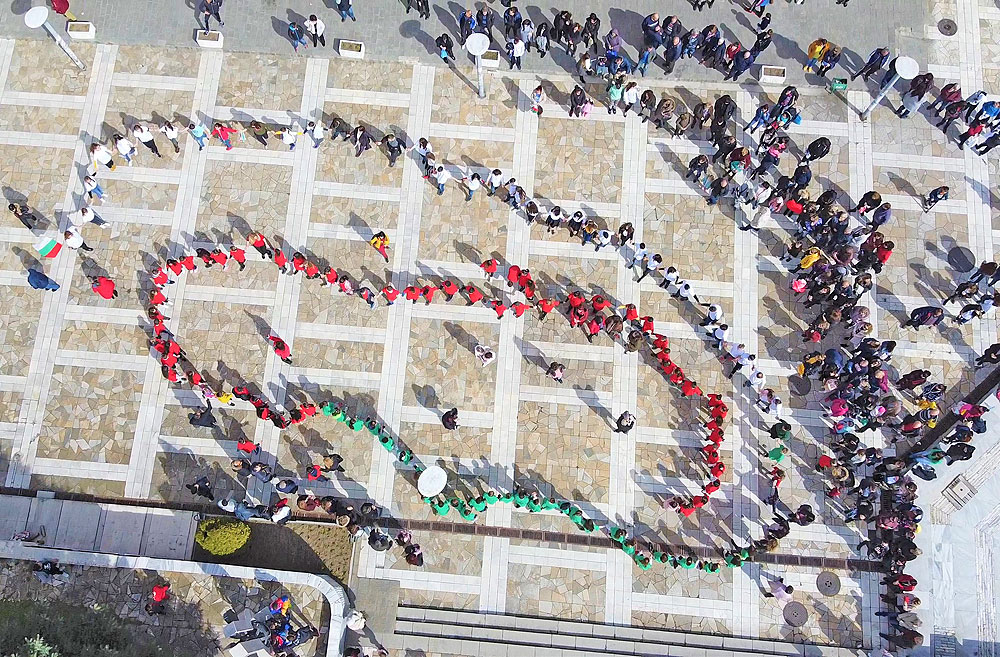Празнично шествие поведоха знаменосци от ОУ „Иван Вазов“ до площада, където се изви трицветното хоро под звуците на „Харманлийските славеи“ с ръководител Жеко Ангелов.