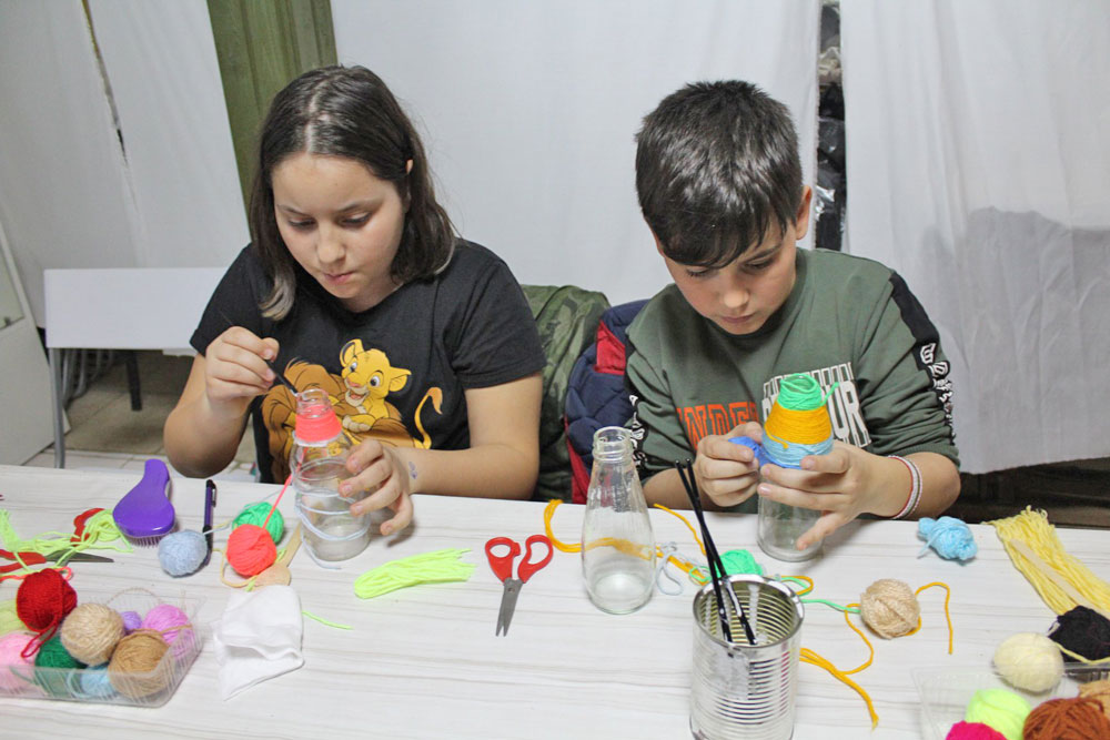 Децата проявиха и творчески заложби, като изработиха кукли, кошнички с цветя и други украшения. С разноцветна прежда и бои те сръчно преобразиха бутилки и дървени лъжици в пъстри творби на приложното изкуство.