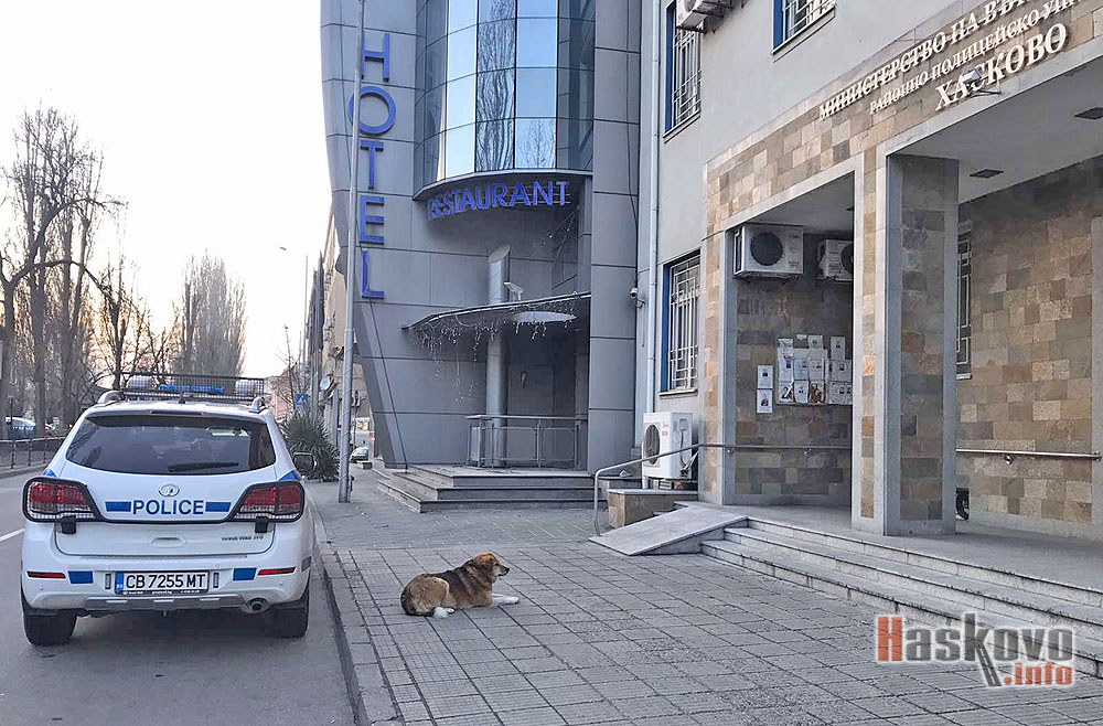 Улично куче на пост пред Районното управление на полицията в Хасково заснеха читатели на Haskovo.info.