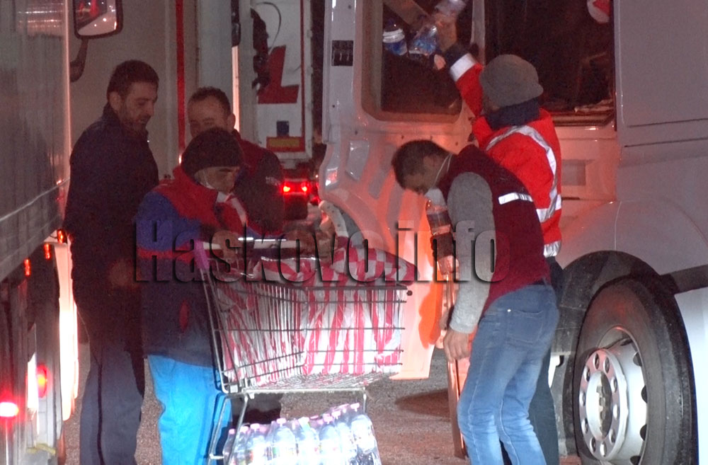 Haskovo.info припомня, че вчера доброволци на Българския червен кръст започнаха да раздават кроасани и вода на шофьорите, а от Пътното управление осигуриха водоноска.