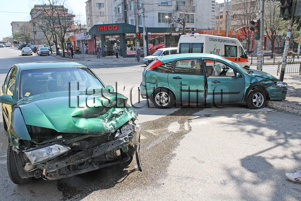 Форд и Опел катастрофираха на кръстовището между улица „Дунав“ и булевард „Раковски“ в Хасково.