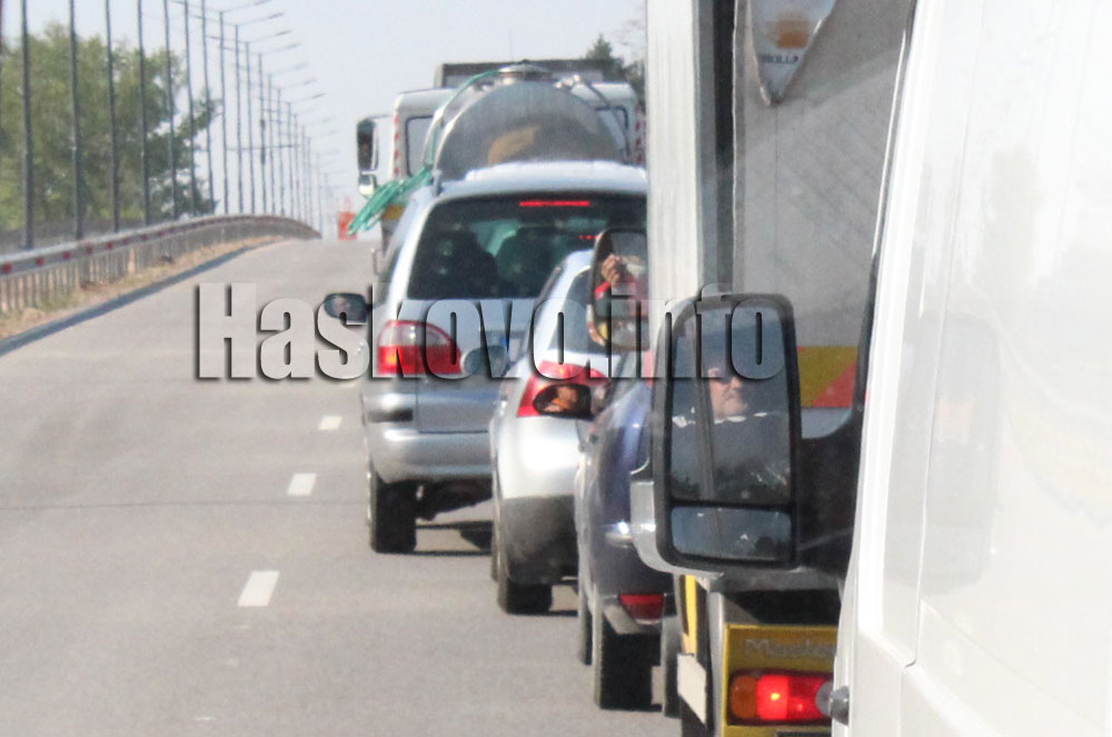 Преди обяд на контролно-пропускателния пункт на входа на Хасково откъм Димитровград се образува голяма опашка. Колоната стигаше до детелината след Бирената фабрика. Преминаването ставаше за около 20 минути.