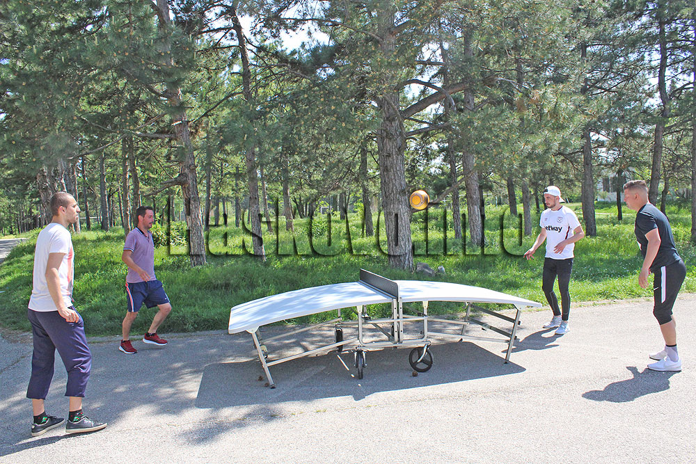 Любители на спорта се забавляваха с играта, базирана на футбола, на специална преносима маса до заключения стадион „Хасково“. Те разказаха пред Haskovo.info, че масата струва 1 000 евро, но сега заради коронавируса е наполовина по-евтина. По техните думи този спорт набирал все по-голяма популярност по света и в България. У нас дори имало спортни клубове по текбол в Асеновград и Габрово.
