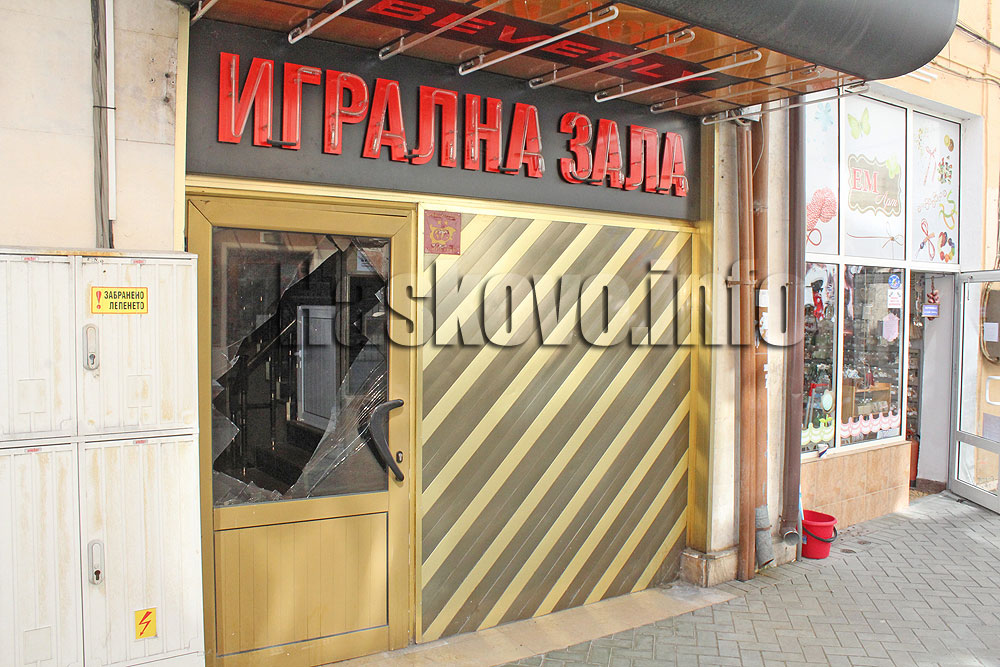 Счупено е стъклото на входната врата на игрална зала до площад „Свобода“ в Хасково.