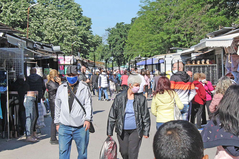Всички търговци трябва да са с маски или шлемове и да имат дезинфектанти. За клиентите носенето на предпазни средства е препоръчително. Екипи следят да няма струпване на хора. Пазарът днес ще бъде дезинфекциран два пъти, а обществените тоалетни – на всеки час.