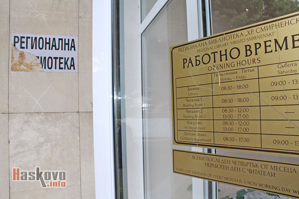 Вандали повредиха табела и работното време на Детския отдел на Регионална библиотека „Христо Смирненски“ в Хасково.