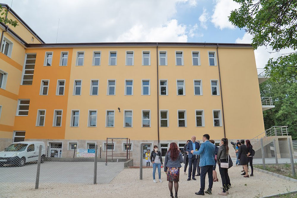 Той е изграден с 554 856 лв. безвъзмездно европейско финансиране по проект. Днес беше церемонията по прерязване на лентата. За 15 месеца е извършен ремонт на цялата фасада на сградата и прилежащото дворно пространство. Подобрена е енергийната ефективност, чрез полагане на външна изолация, монтаж на дограма и ремонт на покрива. Сменена е старата дървена дограма с нова ПВЦ на цялото западно крило и е положена цялостна топлоизолация на крилото. Извършен е основен ремонт на покрива с топло и хидроизолация. Сменени са изцяло електро и ВиК инсталациите и е изградена пожароизвестителна система. Подменени са подовите настилки с гранитогрес и ламиниран паркет. Обновени са покритията по стените и са сложени окачени тавани. Ремонтирани са напълно санитарните помещения. Монтирано е оборудване и обзавеждане в санитарните помещения и в прилежащото дворно пространство, където има поставени пейки и беседки. По проекта са изградени рампа и стълбище. Поставени са нови плочки, ограда има и места за отдих.