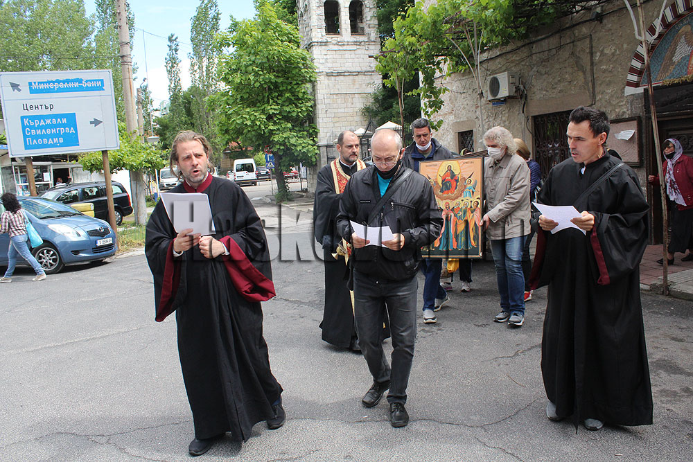 Шествието по традиция тръгна от църквата „Св. Архангел Михаил“ и продължи до параклиса „Възнесение Господне“ на Ямача. Там вчера беше отслужена вечерна литургия. Празникът се отбелязва винаги в четвъртък на 40-ия ден след Великден.