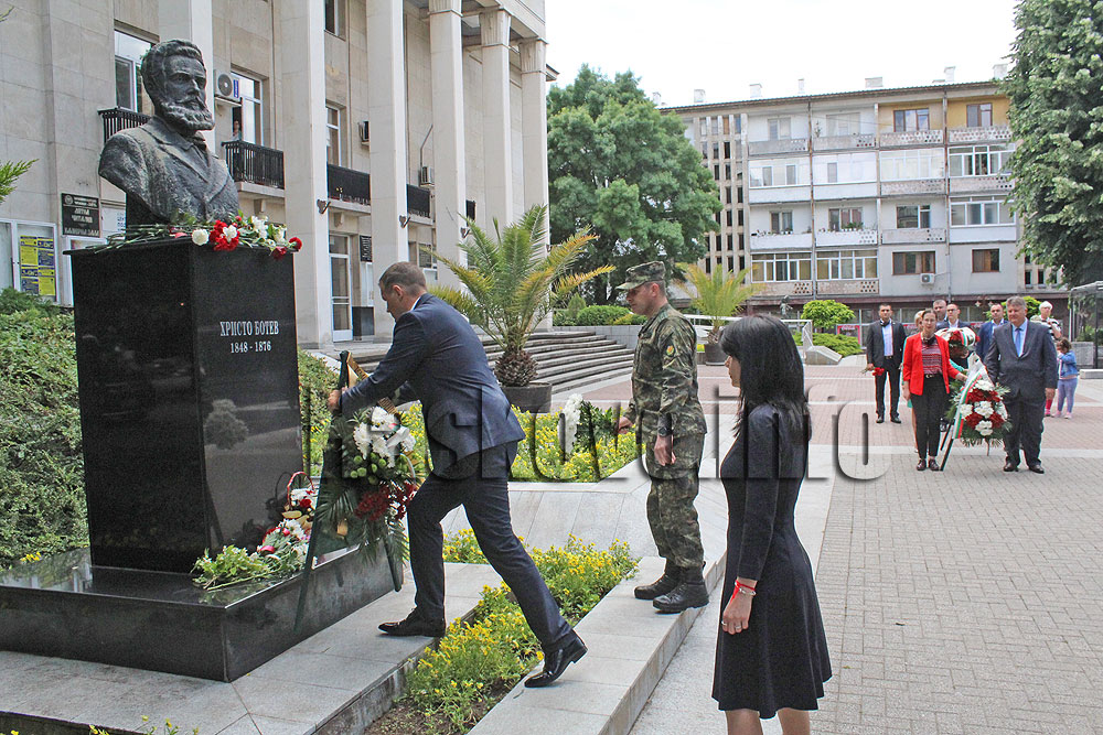С вой на сирени и поднасяне на венци и цветя пред бюста на Христо Ботев пред читалище „Заря“ Хасково почете 144 г. от гибелта на националния герой.