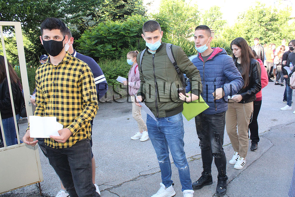 Тази сутрин, както при матурата по български език и литература в понеделник, абитуриентите влизаха в училищата с маски, като им се измерваше температурата. Вътре младежите не са задължени да работят с предпазни средства. Квесторите също са с маски, стаите са дезинфекцирани. Във всички зали има видеонаблюдение.