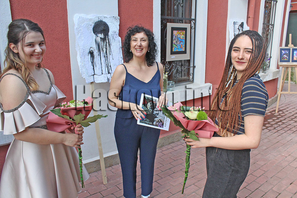 Художничките Таня Борисова и Петя Атанасова заедно с ръководителя им в школа „Колорит“ Веселина Делчева откриха тази вечер изложбата „Отвори очи“ пред театър „Иван Димов“ в Хасково.