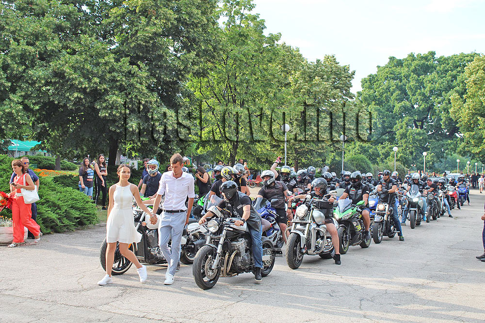 По традиция всички се събраха край Голямата пейка на входа на парк „Марица“ и след това се отправиха към площад „България“. Красива двойка абитуриенти беше ескортирана от десетки мотори.