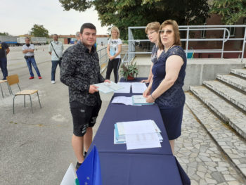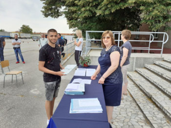 Това стана на тържествена церемония в двора на гимназията при спазване на противоепидемичниите мерки. Директорът инж. Донка Станчева връчи документите за успешно завършване на средното образование и професионална квалификация на зрелостниците. Първи своите два документа получиха най-добрите ученици от випуск 2020 – Владимир Сашев от 12 Б клас и Христо Димов от 12 В клас.