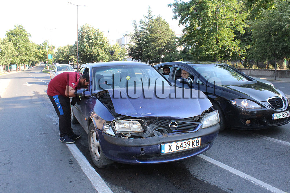 Опел и Ауди катастрофираха на кръстовището между булевардите „Васил Левски“ и „Съединение“ до Цигарена фабрика в Хасково.