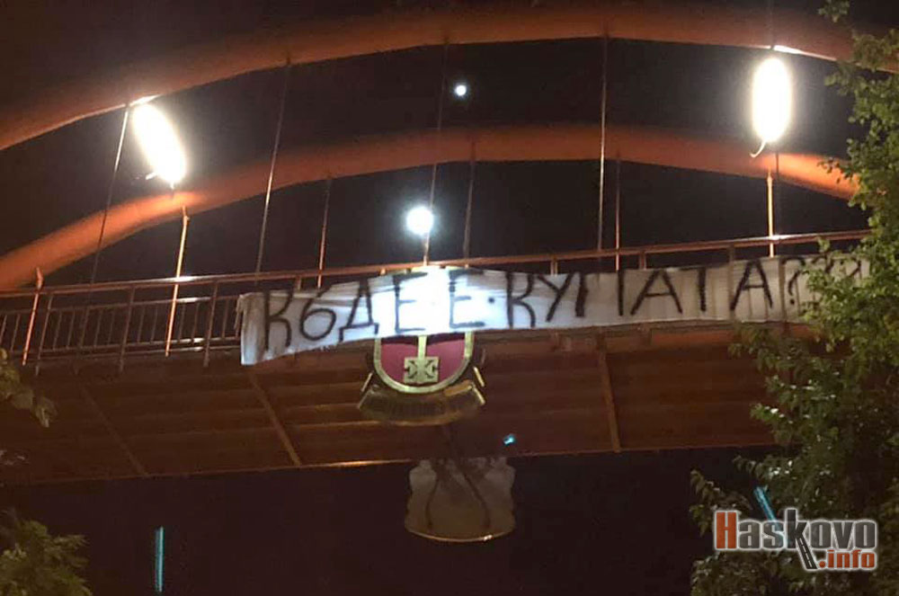 „Сини“ фенове опънаха послание на оранжевия мост в Хасково след снощния финал за Купата на България, загубен от ЦСКА – София с дузпи от „Локомотив“ (Пловдив).