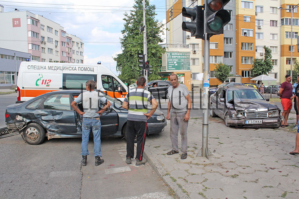 Рено и Мерцедес катастрофираха на кръстовището между булевард „Васил Левски“ и улица „Дунав“ в Хасково.
