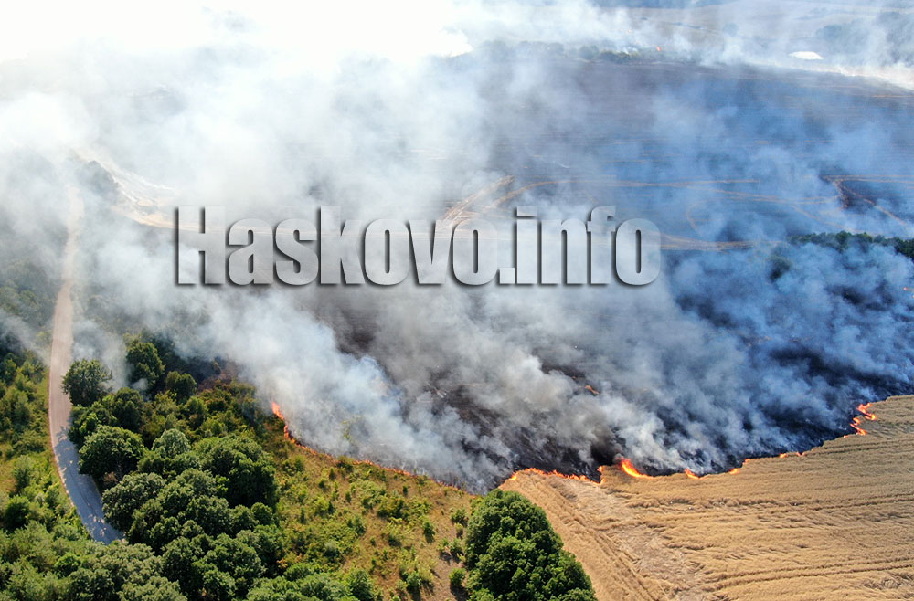 Горят пасища, треви и храсти на огромна територия. На този етап опасност за населените места няма, уточниха пред Haskovo.info от Областната дирекция „Пожарна безопасност и защита на населението“.