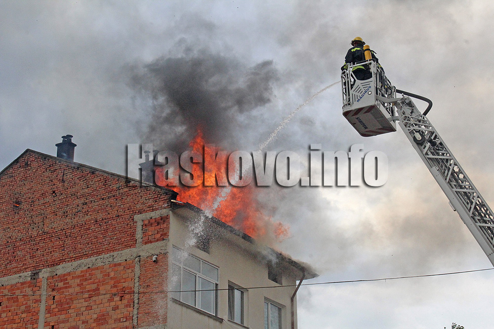 Покривът на триетажна къща пламна в ранния следобед в Хасково.